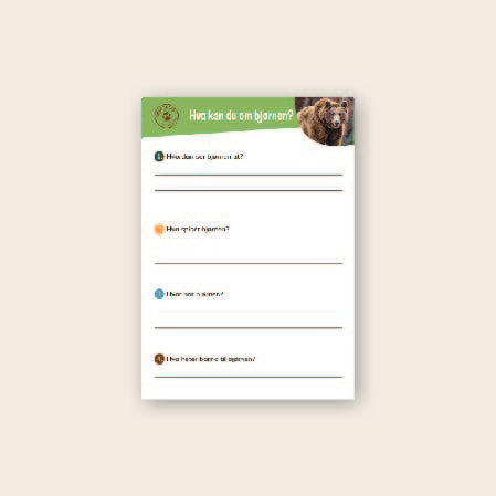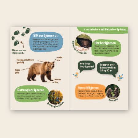 3 nivådelte e-bøker på 4 sider, som inneholder fakta om bjørnen. Bøkene har fokus på enkle begreper og begrepsforklaring. Passer for 1.-2. trinn. Kan også brukes på 3. trinn eller i små grupper/spesialundervisning. Bøkene gjør det lett å differensiere undervisningen.